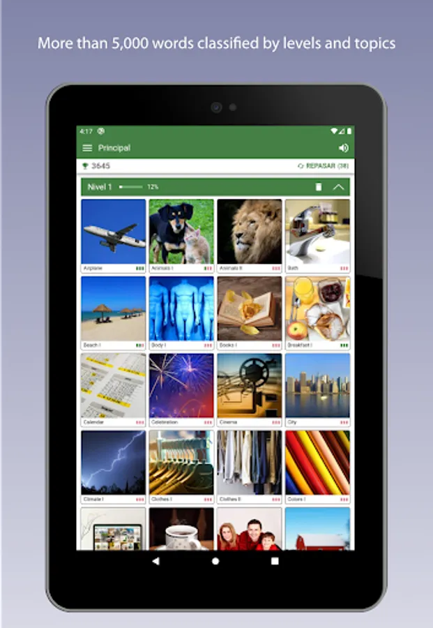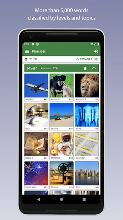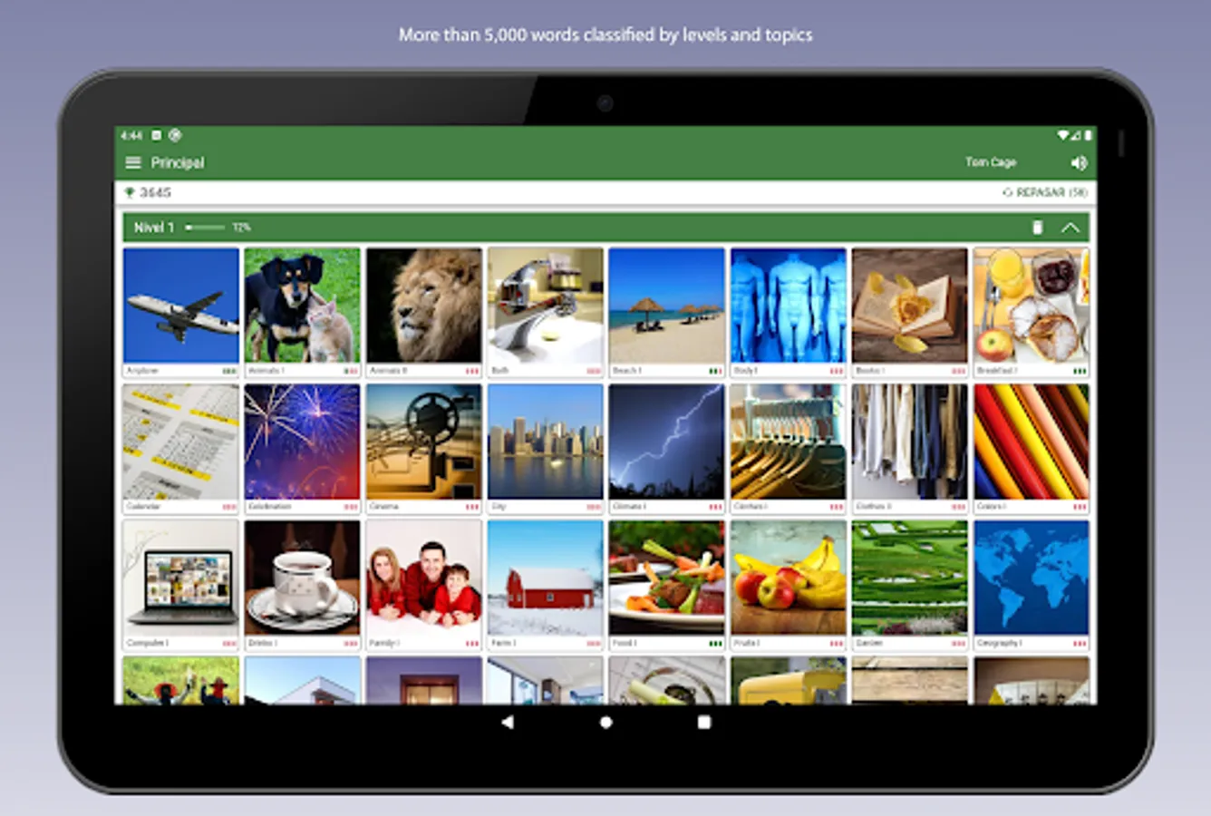 Free app to learn English by improving your VOCABULARY in an easy and fast way, with more than 5,000 words classified by levels and topics.