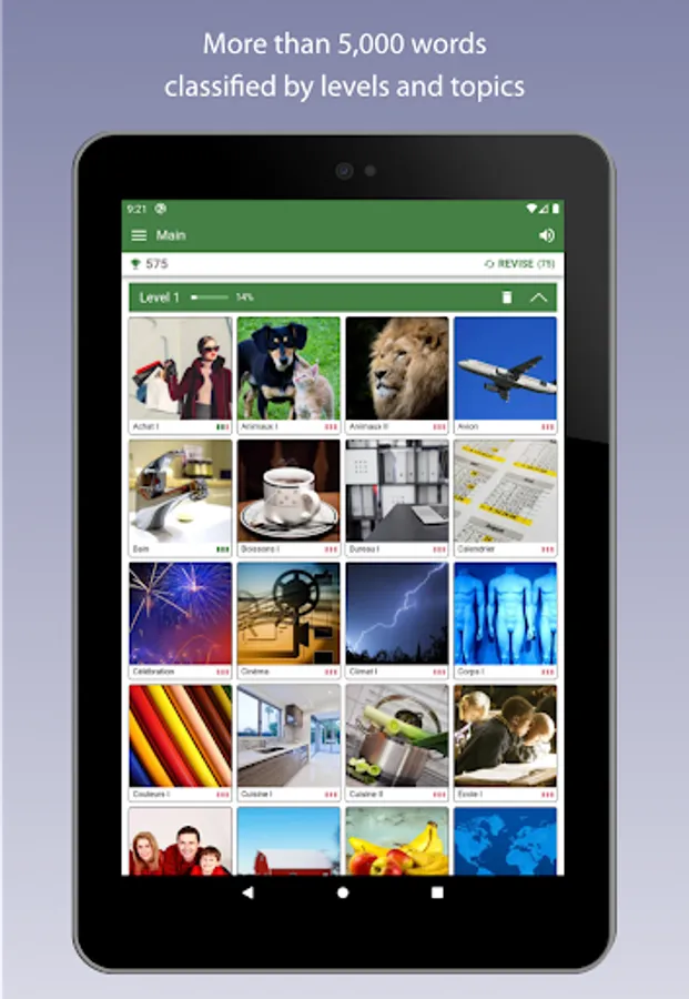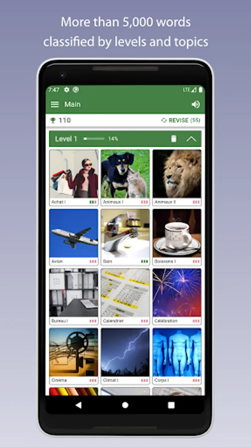 Free app to learn French by improving your VOCABULARY in an easy and fast way, with more than 5,000 words classified by levels and topics.