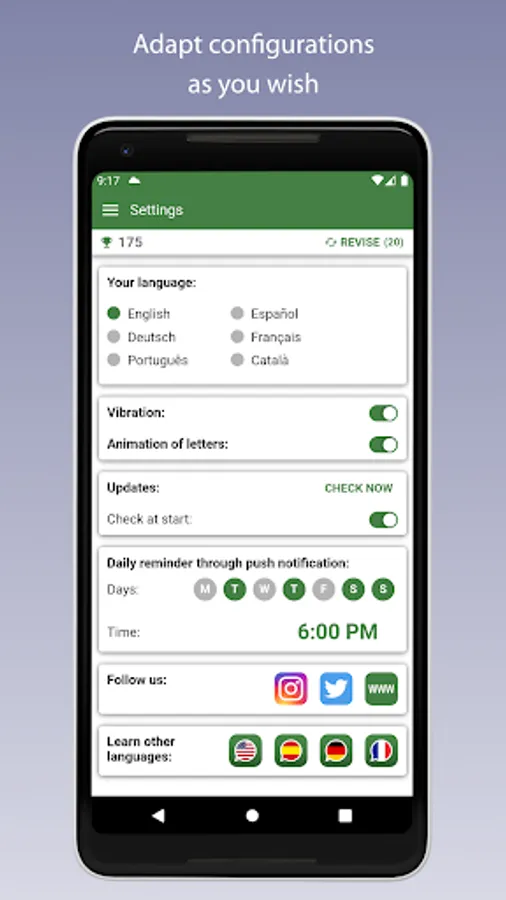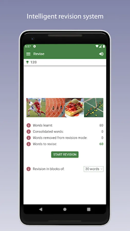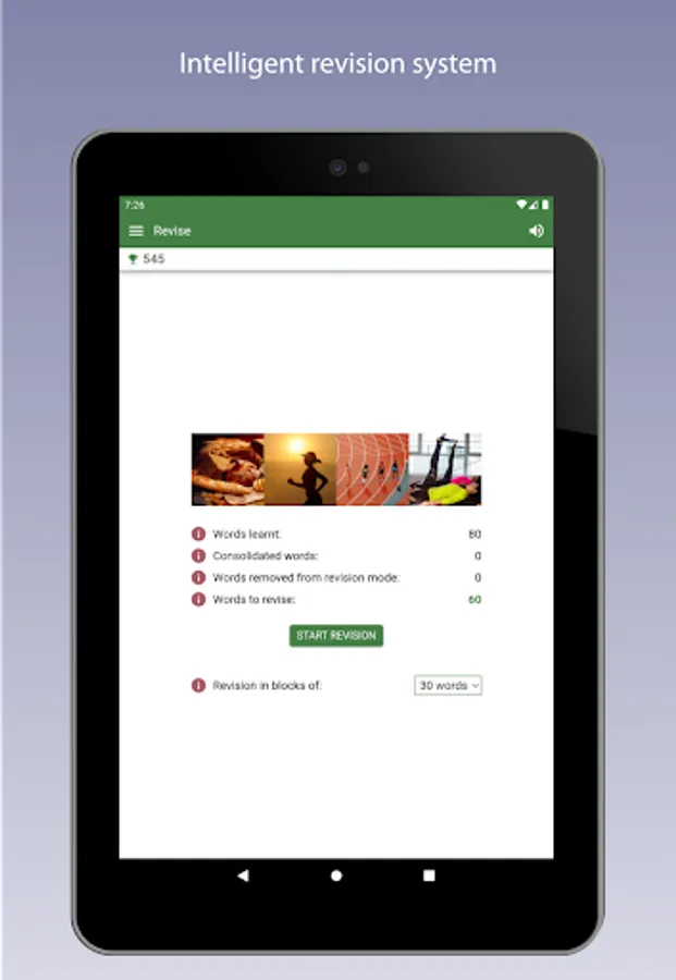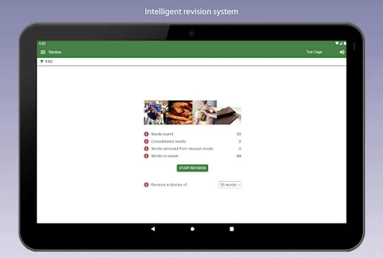 - Intelligent revision system which will make you revise the word according to your hits and mistakes. The more often you get a word wrong, the more often this word will be revised until you remember it.