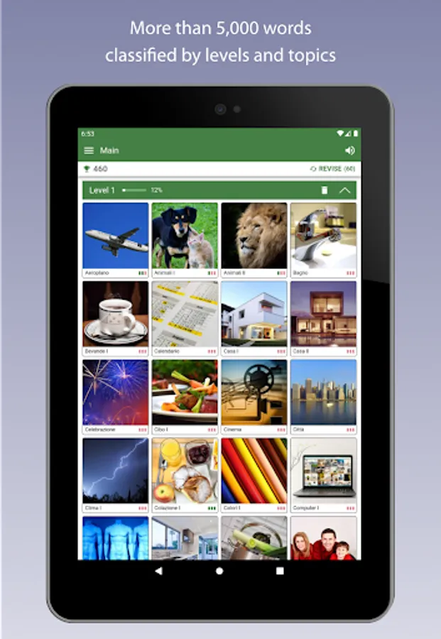 Free app to learn Italian by improving your VOCABULARY in an easy and fast way, with more than 5,000 words classified by levels and topics.
