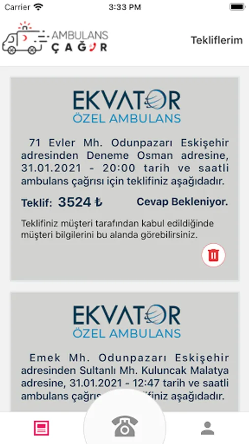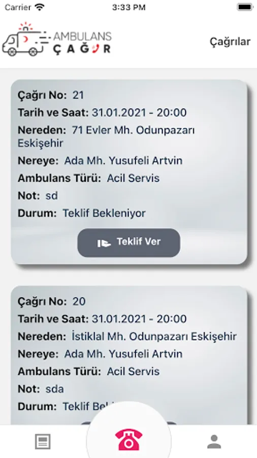 Private Ambulance Companies that are members of our Call Ambulance application have the same status with 112 ambulances under the control of the Ministry of Health. The main purpose is to transfer the patient safely between cities and within the city.