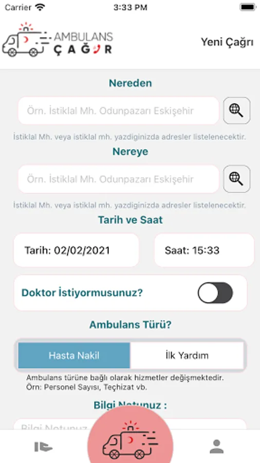 As a patient and a patient's relative, you can find an ambulance that meets the right conditions and save time with a quick reservation. When you register, you will be able to reach our ambulances serving at once.