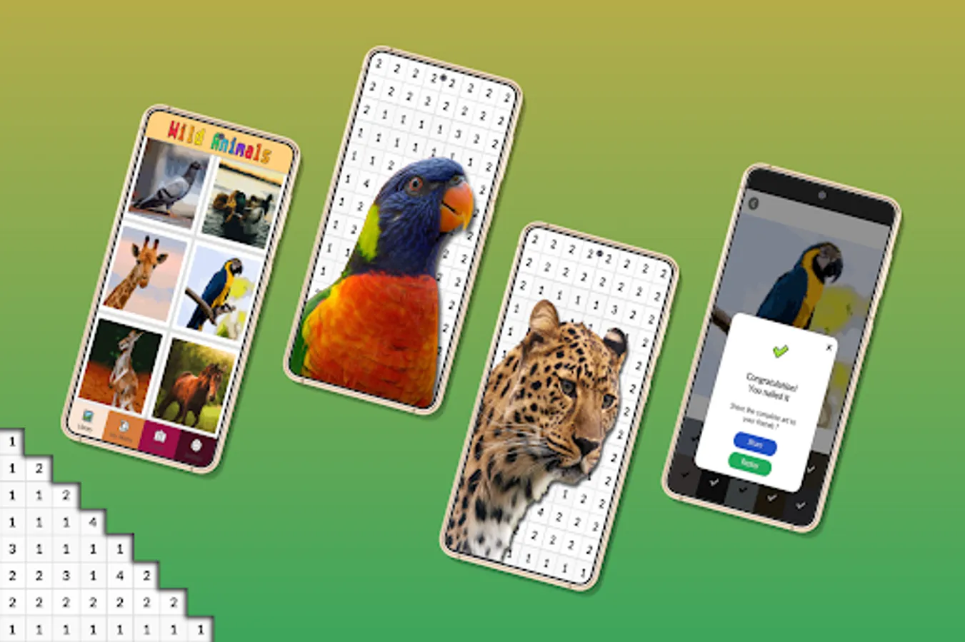 For you animal lovers, this number coloring game is perfect for you. Here you will find many beautiful animal pictures, ranging from birds, giraffes, dolphins, turtles, lions, tigers, hippos, snakes, foxes, monkeys and many more.