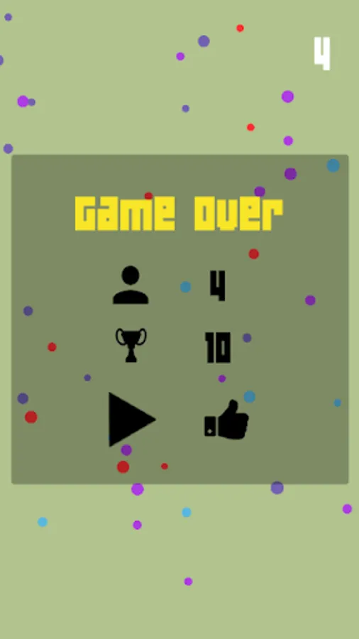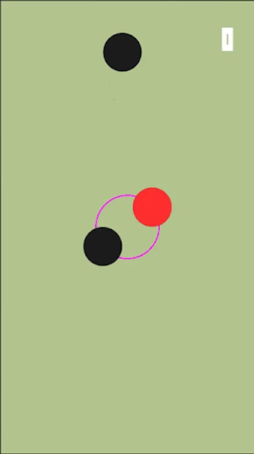 - If a dot of a different color collides with either of the two dots, the game is over.