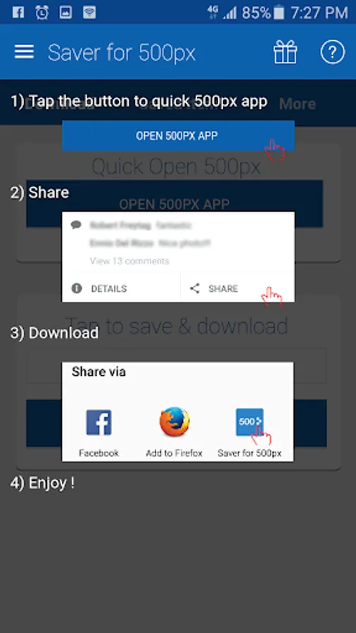 - This app is just a tool to help users save and download their favorite photos from popular sharing app and website.