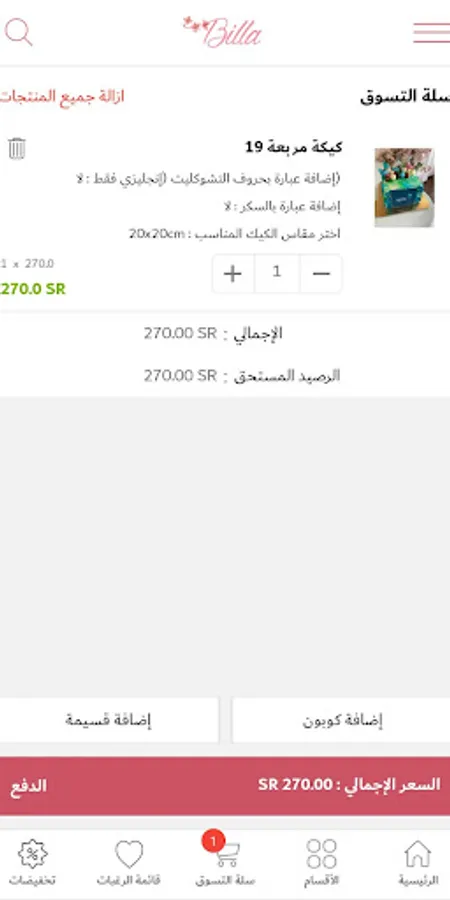 Now you can reach us in a simpler and easier way. Billa Sweets is the first of its kind in the Kingdom of Saudi Arabia in its field and will cover all the branches available in the Kingdom with a quick delivery service and an enjoyable experience to choose what you want from all the items available to us.