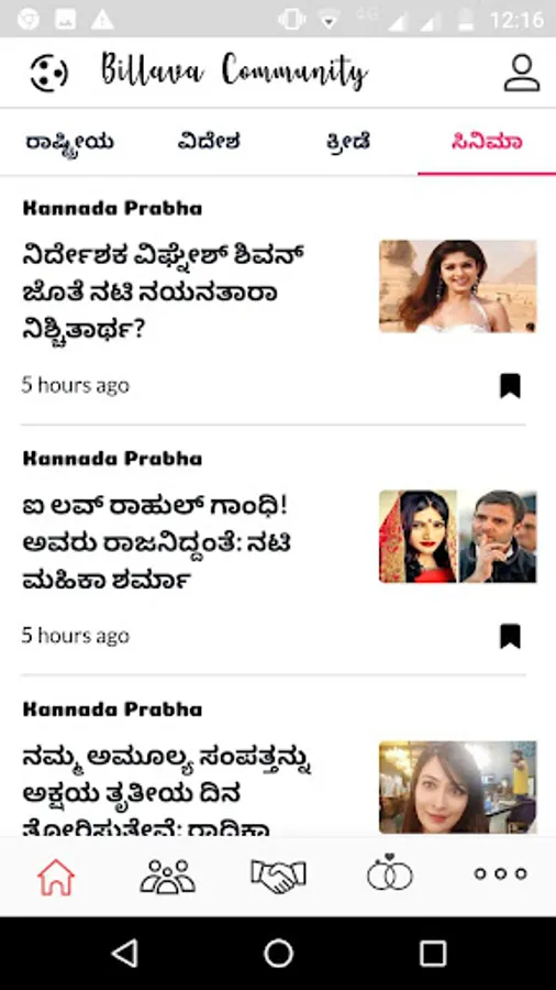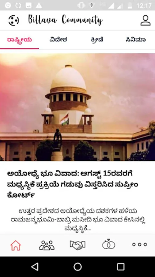App includes community news of billavas, Poojaris, Thiyas, Belchads and Edigas. App helps to share news and articles in social media.