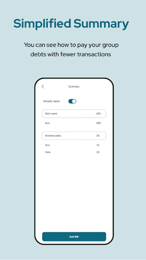 Do not try to remember all your debts and calculate them once a month with assumptions - quickly track this in-app based on bills or corresponding personal agreements.