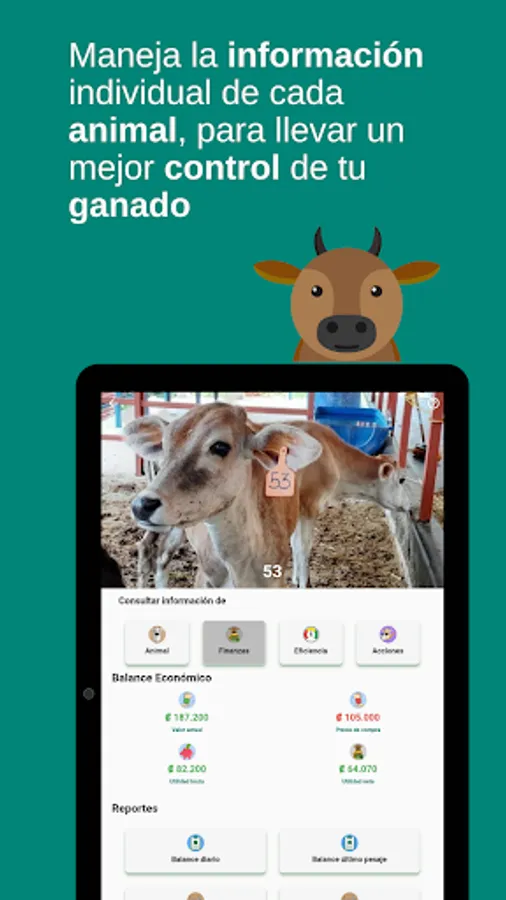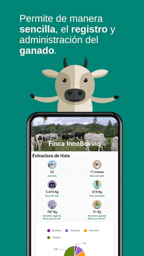 InnoBovino is the ideal application for livestock companies looking for a tool to help them improve their company's efficiency and profits. With Innobovino you can record the daily tasks of your farm in a fast, easy and fun way so that with these records you can obtain information that can help you make better decisions to grow faster.