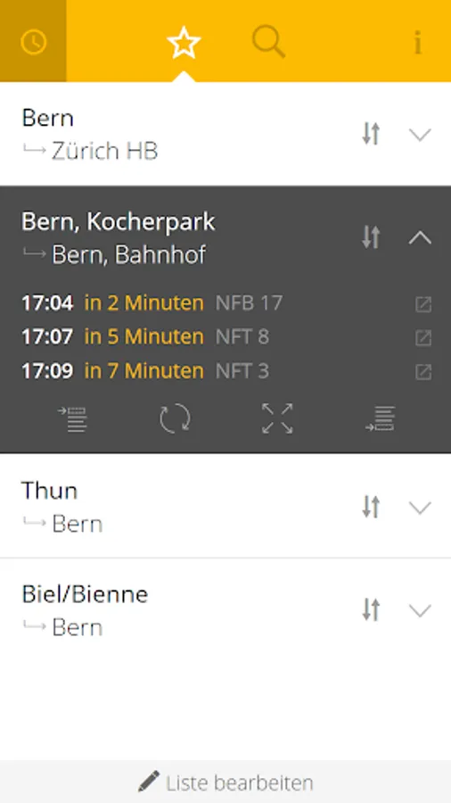 Anyone regularly traveling using public transport often runs the same routes over and over again. Often, one wishes to just quickly see upcoming departure times of such a route, without having to search long and tediously.
