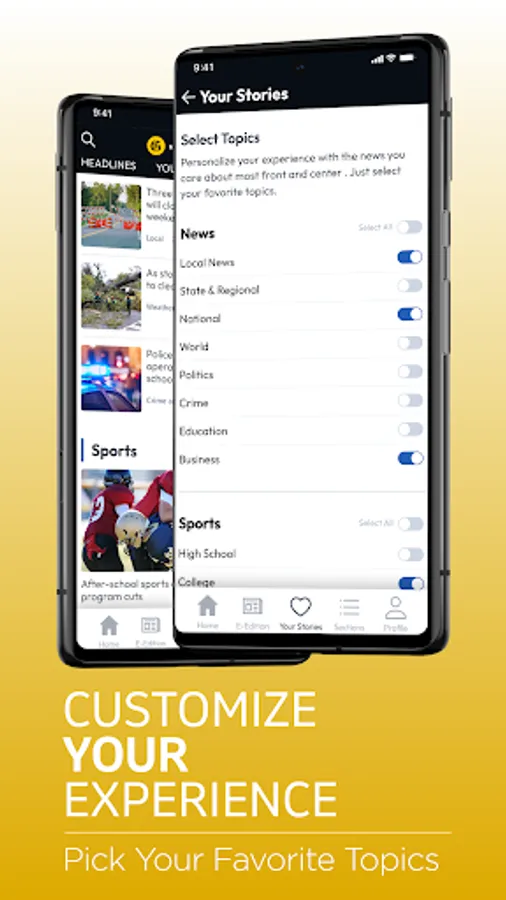 * Your Stories – personalize your experience by selecting the local news topics that matter most to you