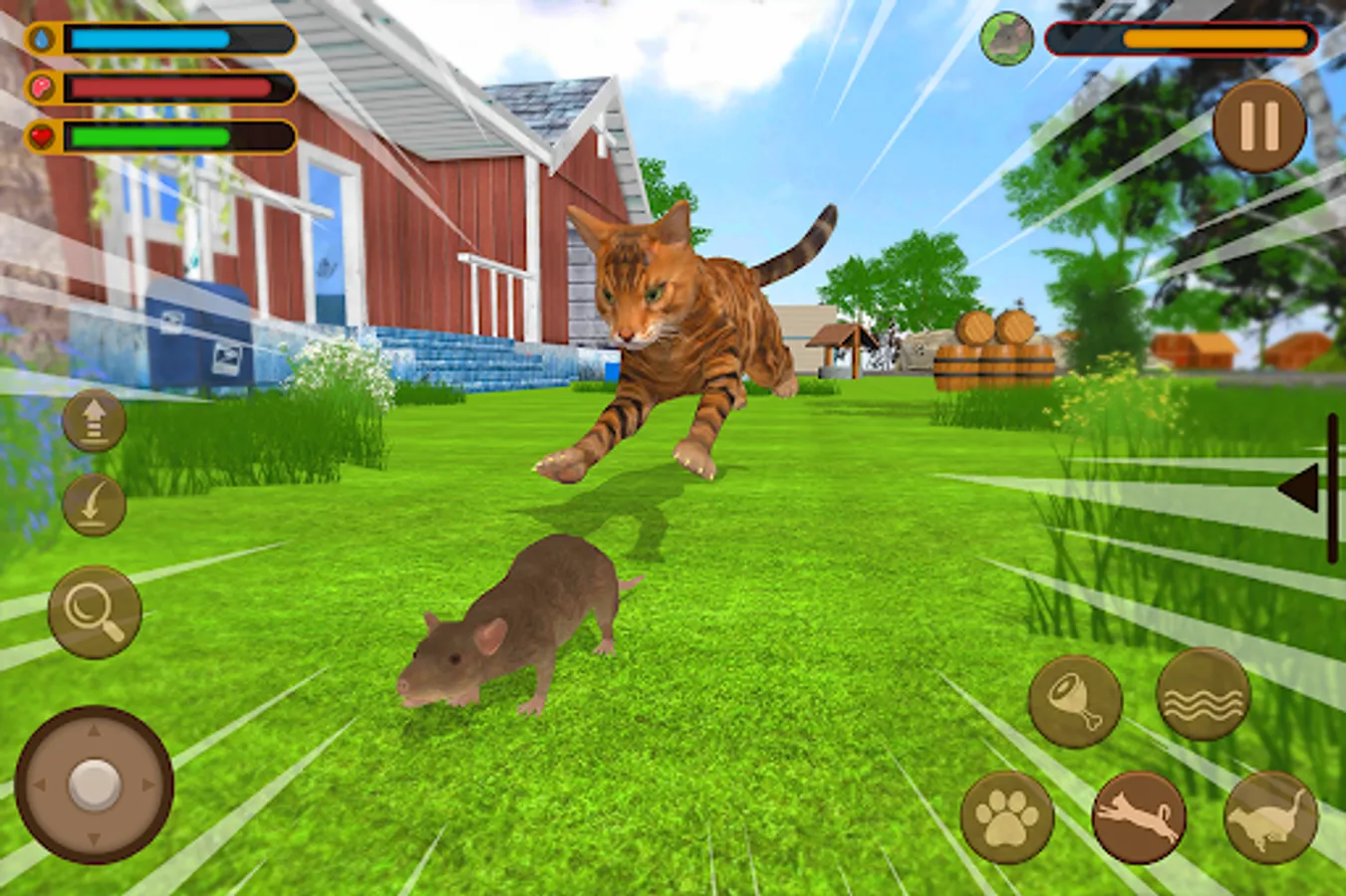 You have played many simulation games like big dog simulator, crazy dog games, and crazy cat games. A new and fun kitty cat game for cat lovers is here now with a cat games twist. Are you tired of the wild animal simulators and other wild animals games like dinosaur simulator games do you want to try out a new cat animal simulator 2021? How about a pet simulation, maybe a cat vs rat fight game? Billion Game Studio brings you the cute cat vs rat simulator 2021 game! This is for the lovers of pet animal games and crazy cats! In this new cat simulator mouse chase 2021. Your job is to find rats, 3d spiders and attack them for prey this cat vs mouse simulation will keep you addicted for hours.