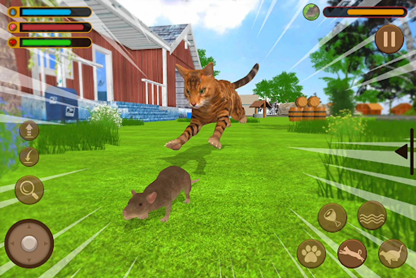 Step into the jungle and live the life of a wild forest as a cat simulator player, be a cat, act like a cat, play as a cat. The gameplay of Cat Simulator: Pet Life Games is simple, just move the cat with a joystick and prepare for tasteful missions. There are two main maps and 15 missions. The jungle and forest farm. Complete missions by finding your given tasks. You are going to get thirsty and hungry. Find food and water as moving on your mission.