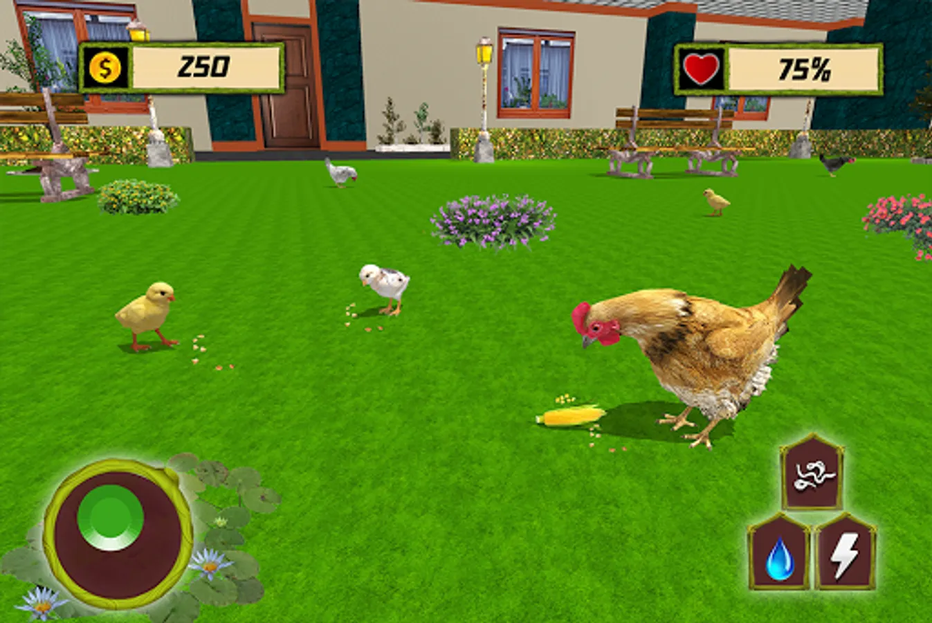 Hen Simulator is really a sweet animal family simulator where you can feed the chicks and raise your family. Train the chickens and roosters strong enough to fight and survive against the enemies as in animal games. Live with your mate hen and build a beautiful home for your family. Explore the house and the town to complete the various animal adventure quests of the hen simulator. Use your feathers to attack and protect the chinks from wild deadly animals.