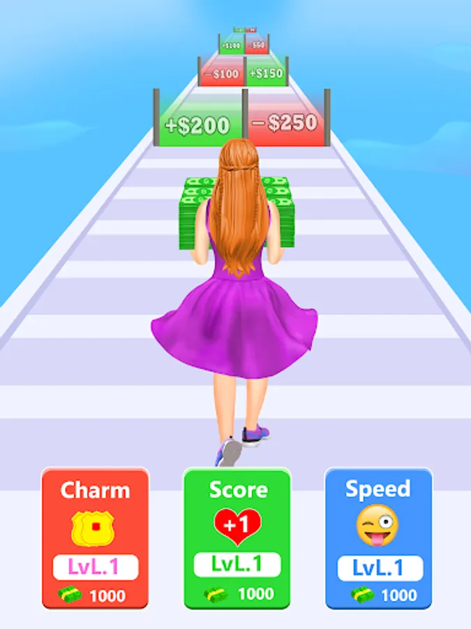 Endless Money Race has multiple hurdles waiting for you on the path before you reach your destiny you have a money stack to collect and try your luck and run for love of money while running in this money games endless runner 3d rich girl princess running games. You have got to showcase your skills of being the ultimate Money runner with the most coins of money runner 3d race girls games. Multiply your earnings using your logical skills girl runner for rich girl shopping. It’s time to collect your coins in money for girl shopping in girls money race games, choose the best gates, and multiply your cash before you reach the end of the money girl running games.