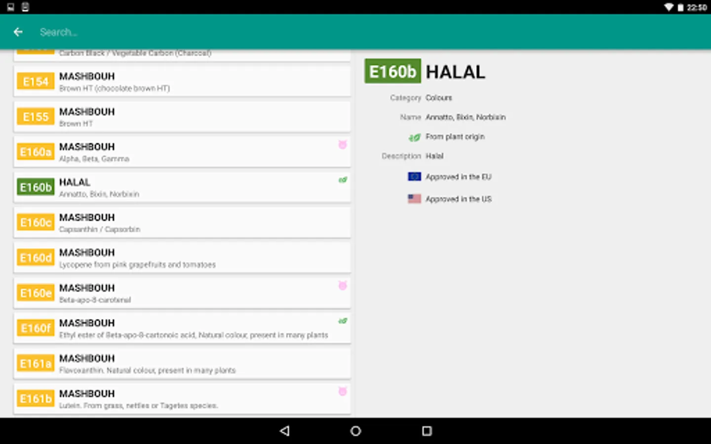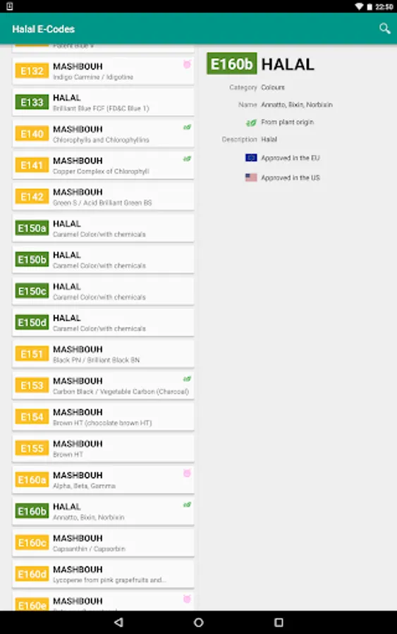 The most complete collection of food additives (E-Numbers/E-Codes) and their Halal status.