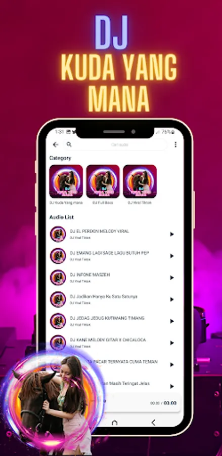The DJ Kuda Yang Mana Offline Android application is the ideal solution for DJ music lovers who want to enjoy DJ Kuda Yang songs and DJ Janda Blonde music anywhere and anytime, without an internet connection. With this application, users can download albums which are horse mp3s and play their favorite songs offline.