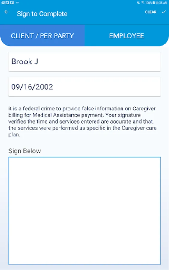 This easy to use point-of-care application records all the required information for Electronic Visit Verification (EVV) with the guidelines as stipulated by Medicaid/Medicare. Used by personal care assistants, Aide and other caregivers to view client information, care plan, report incidents, communicate with the office Caregiver, submit electronic time card, documents, and verify patient visit consistently.