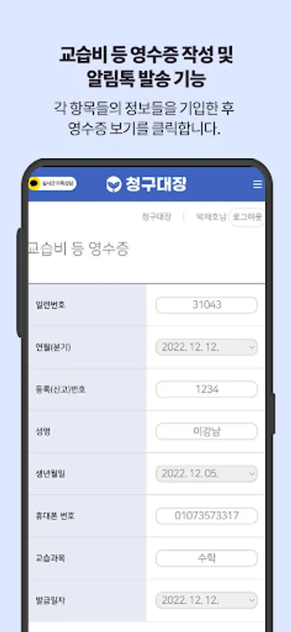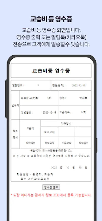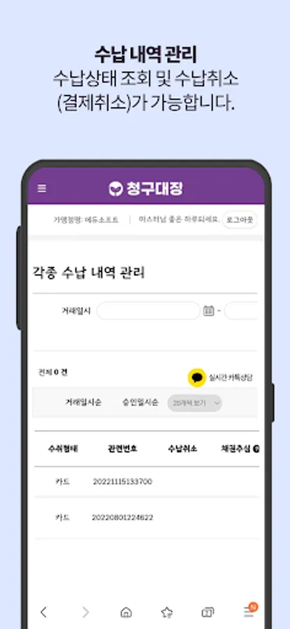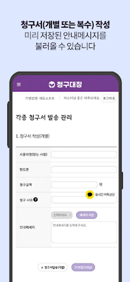 Non-face-to-face payment - You can send an AlimTalk bill to your customer by simply filling in your mobile phone number, billing cost, and reason for billing. Customers can check the details of the bill from the mobile phone bill received through AlimTalk and pay immediately anywhere, anytime without visiting the store.