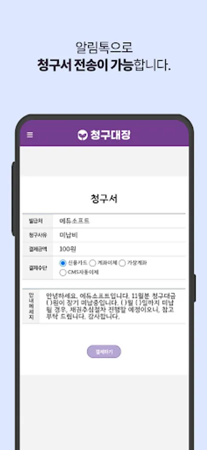 The billing ledger can create the same effect as sending various bills through billing, and is effective for continuous payment requests through re-billing and automatic reservation sending in case of non-payment. Particularly, it is possible to induce installment payment (interest-free credit card installment, CMS installment payment) for long-term non-payment. In addition, it is possible to notify long-term non-payment of debt collection with a single click of a button.