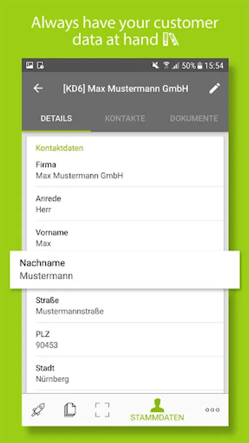 Manage customer data and your product portfolio conveniently on your smartphone. Register contacts, purchase prices, providers and customer discounts for a quick and easy accounting.