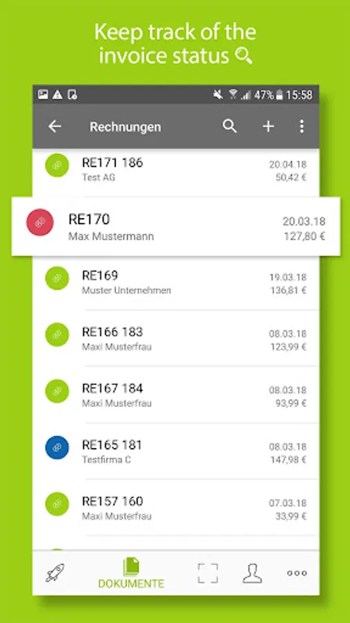 Write invoices and estimates with your smartphone in under 1 minute and send them directly to your customer via e-mail.