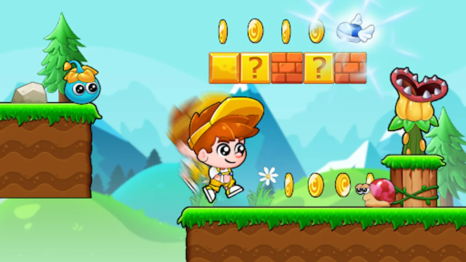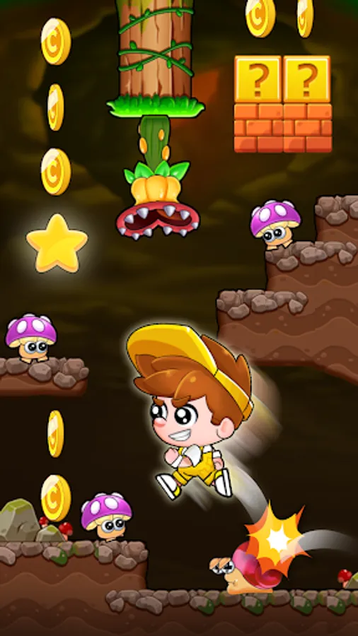 In this jungle game, Billy will jump in beautifully funny zones but also dangerous and challenge, confront many monster as: mushrooms, winged turtle, cannons turtle, spine turtle or jumping fish and many other enemies with jungle terrain full of obstacles and traps. You need to show your skillful use of the jump buttons to help Billy adventure, repelling the evil turtle monster and complete the mission to find peace for the village.