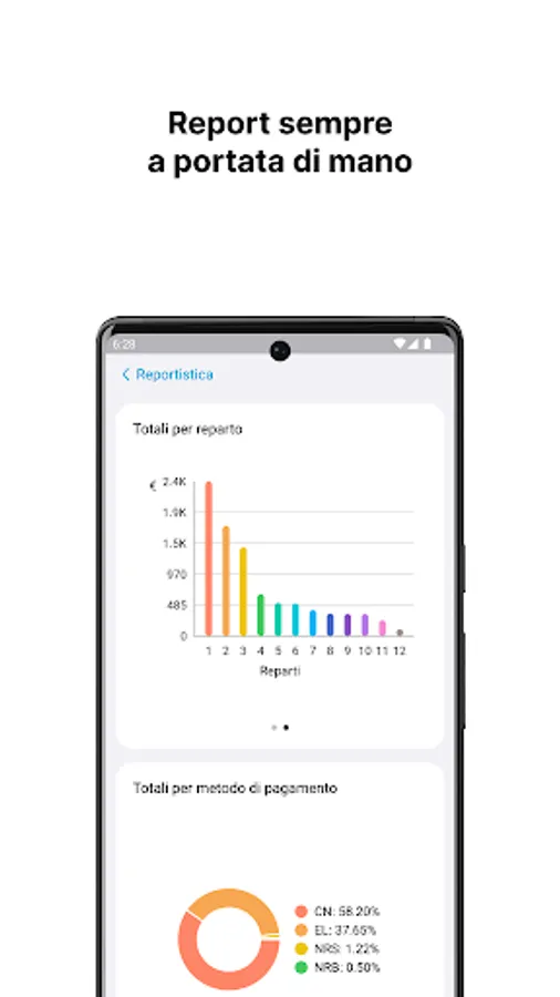 The interface has been designed to make use as simple and intuitive as possible without, however, giving up all the functions you may need to better organize your work: create and manage your departments, cancel or return of commercial documents already issued, it elaborates the sales reports and consults the graphs to have the clearest situation.