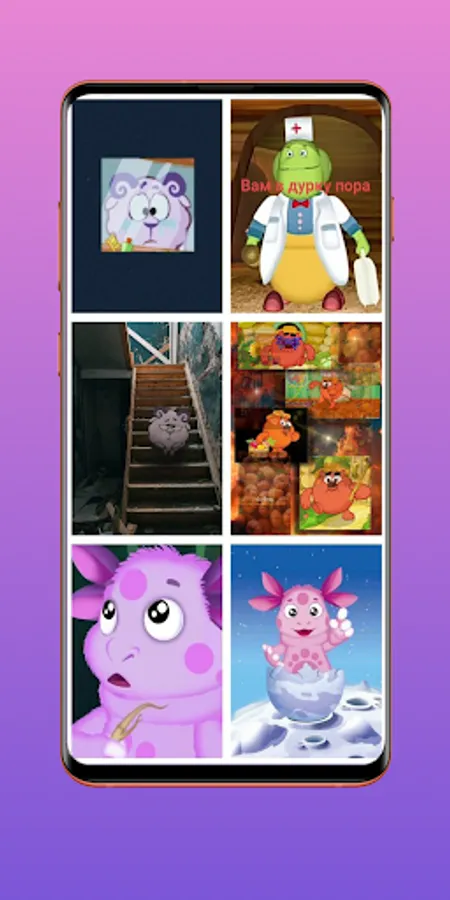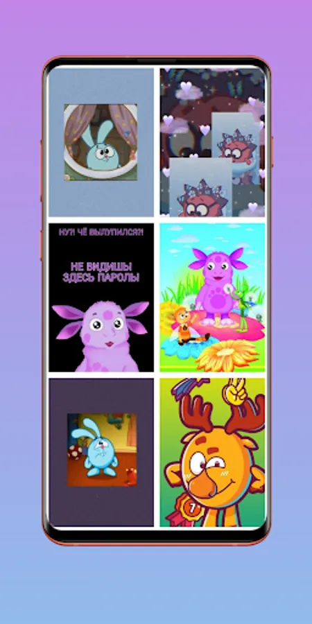 This application contains all the characters of Smeshariki and Luntik, such as Shnyuk, Sher, Vupsen, Pupsen, Mila, Kuzya, Krosh, Hedgehog, Kopatych and others.