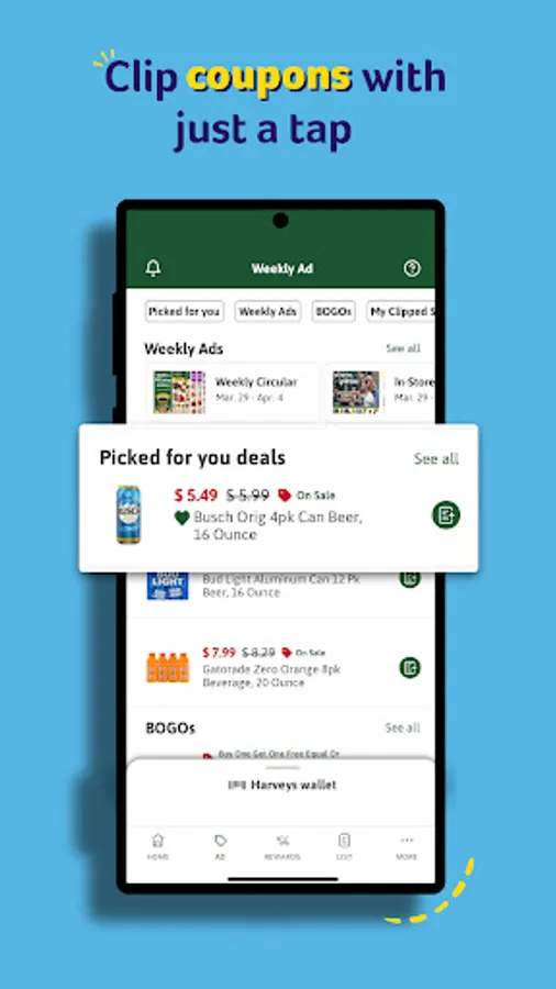 Say farewell to ordinary shopping and embrace extraordinary deals! With the Harveys app, access coupons, our weekly ad, and personalized offers right at your fingertips. You'll be saving even more on your favorite products with tailored deals just for you, plus a dedicated Savings tab for coupons. And the cherry on top? Discover BOGO offers in the Weekly Ad for your store and easily add them to your shopping list.