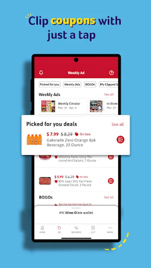 Say farewell to ordinary shopping and embrace extraordinary deals! With the Winn-Dixie app, access coupons, our weekly ad, and personalized offers right at your fingertips. You'll be saving even more on your favorite products with tailored deals just for you, plus a dedicated Rewards tab for coupons and points. And the cherry on top? Discover BOGO offers in the Weekly Ad for your store and easily add them to your shopping list.