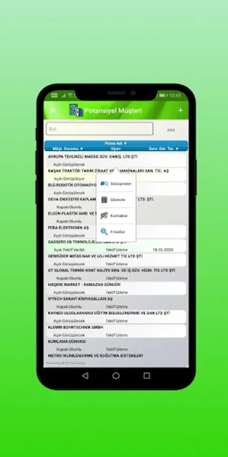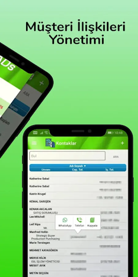 The application developed for the transfer of a received order to the responsible persons quickly. With LEADs, you can define potential customers, create offers, define customers and enter orders. You can add customer contacts to the directory, and transfer the contact on the business card automatically to the system with QR code. You can assign tasks to your other colleagues about the topics, and while you are at your customer, you can get information about the events in your company with the news flow.