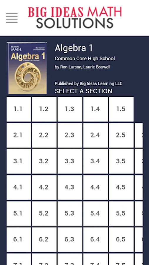 The Big Ideas Math Solutions app provides worked out solutions for the odd-numbered exercises in the Big Ideas Math high school programs. Step-by-step solutions help high school students find and fix their mistakes and grow as independent learners.