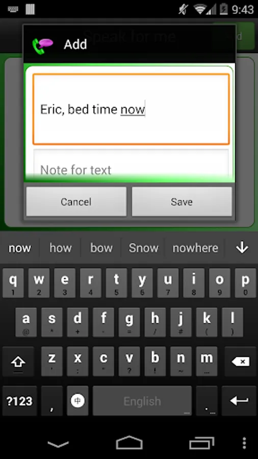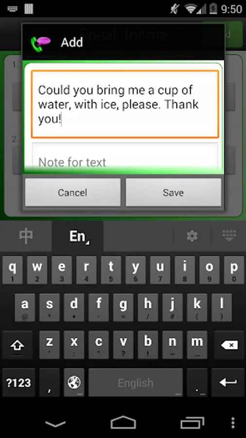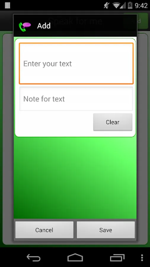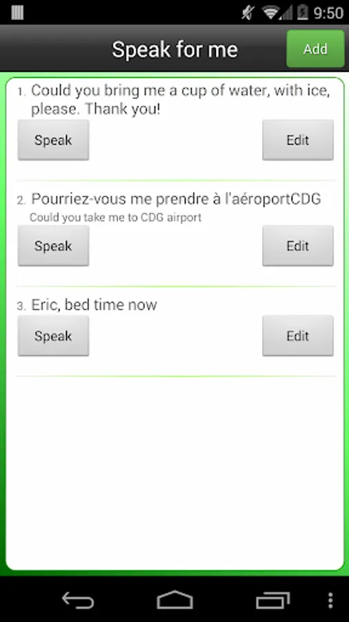 The app lets you create a list of texts, and with a tap of "Speak" button, the phone will speak out the text.