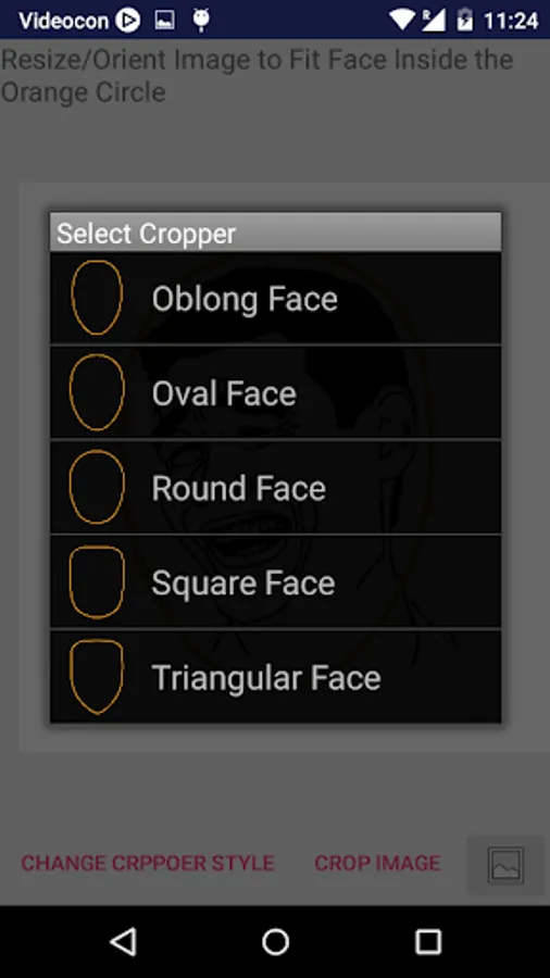 1. User can choose from list , which cropper he wants to use by clicking on "change cropper style".