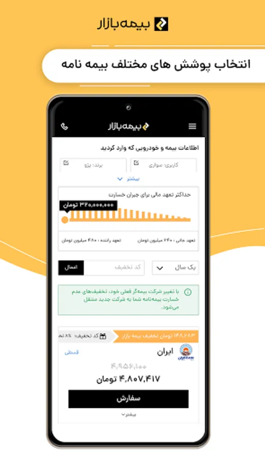 Insurance market is the first Internet shopping website in Iran. You can get advice on buying, comparing insurance prices from different companies and buying online at market insurance. Comparison of the price of car insurance (third party insurance and body insurance), fire insurance and life insurance in accordance with the latest changes in insurance companies (Iran, Parsian, Asia, Alborz, etc.) and all stages of the comparison of insurance prices, renewal and purchase of insurance Third party letters, body, fire and life are under the supervision of Iran's Central Insurance. Choice is not enough only on the basis of price, but factors such as the degree of satisfaction with the payment of damages and credit of companies are based on transparent and unbiased information on insurance purchases. Your insurance advisers will also help you choose the best insurance. For advice, you can contact the market insurance consultants by telephone, email and telegram.