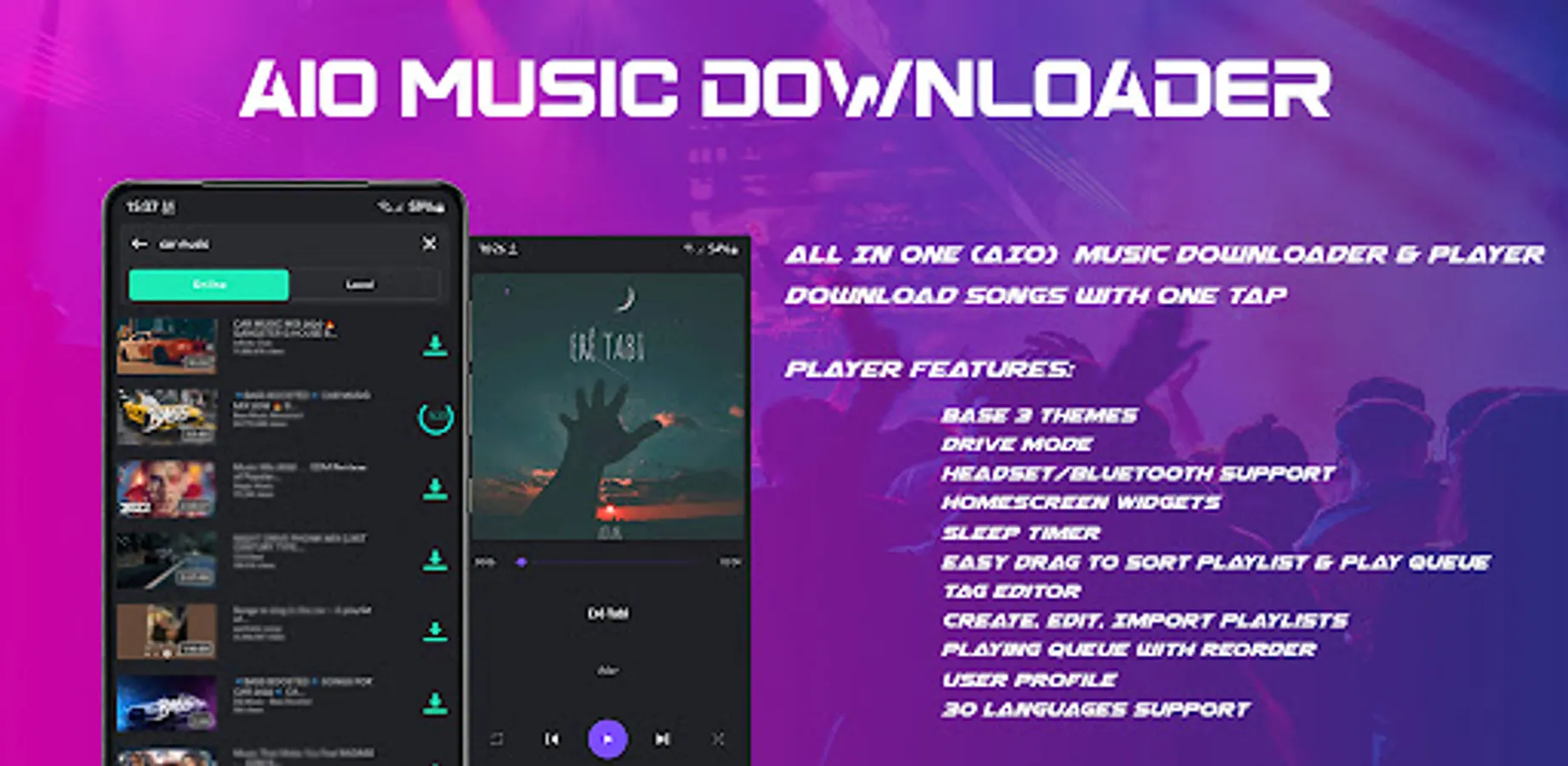 AiO Music Downloader & Player allows you to listen to music online, offline and download music online for free.