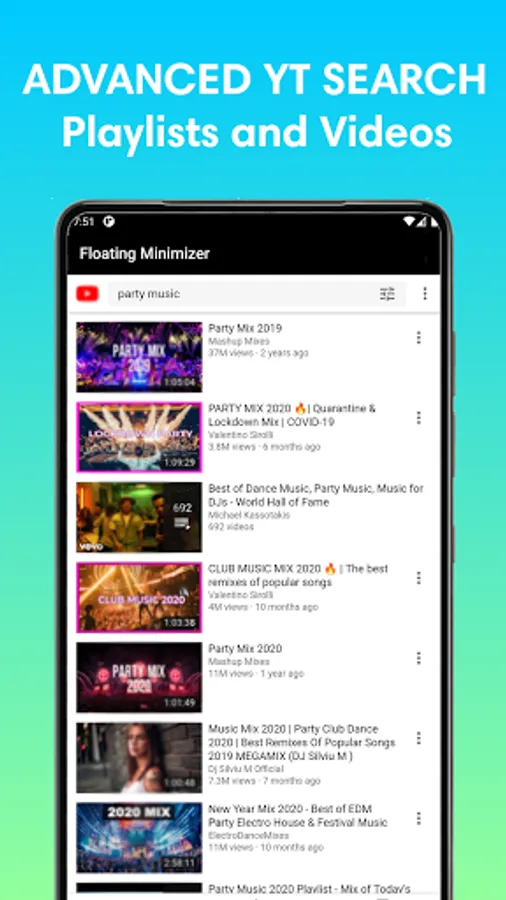 - In this mode, the app is minimized and the video on your phone or tablet is displayed in a small window in the background. So you can keep using your device while you listen to music.