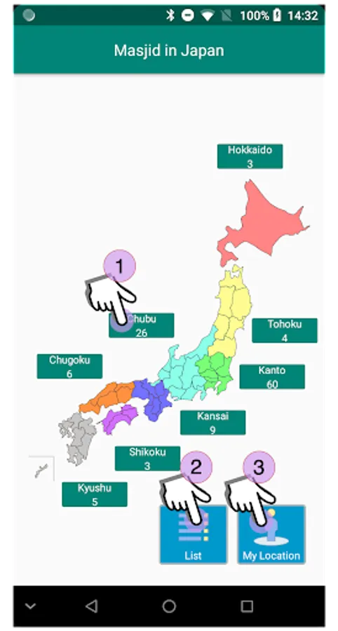 - the number of masjid (mosque) in each region (e.g Hokkaido, Tohoku, Kanto, etc) in Japan