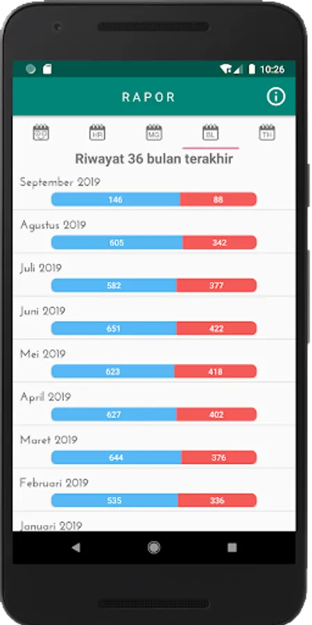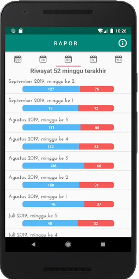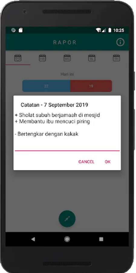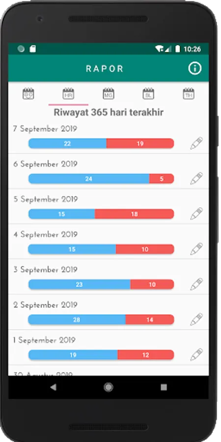 Report card, is a simple application for recording these points. Where later we can see the percentage of our good and lack every day, week, month and year.