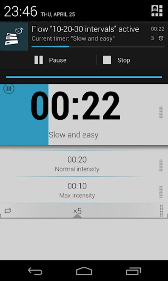 Timer Flow is an easy to use and discreet timer app especially made for workouts, meditation, practice, routine, running intervals, or other times when you don't want to interact with your timer alarms during your exercises, cooking etc. With Timer Flow there is no need for you to interrupt yourself to silence any timer alarms, instead you are discretely notified that the time is up for that part and then it automatically continues with the next timer. Includes example timer flows like Tabata intervals.
