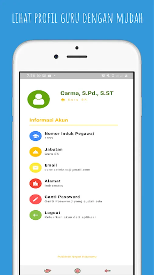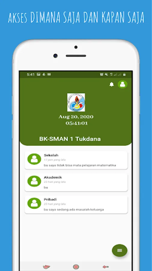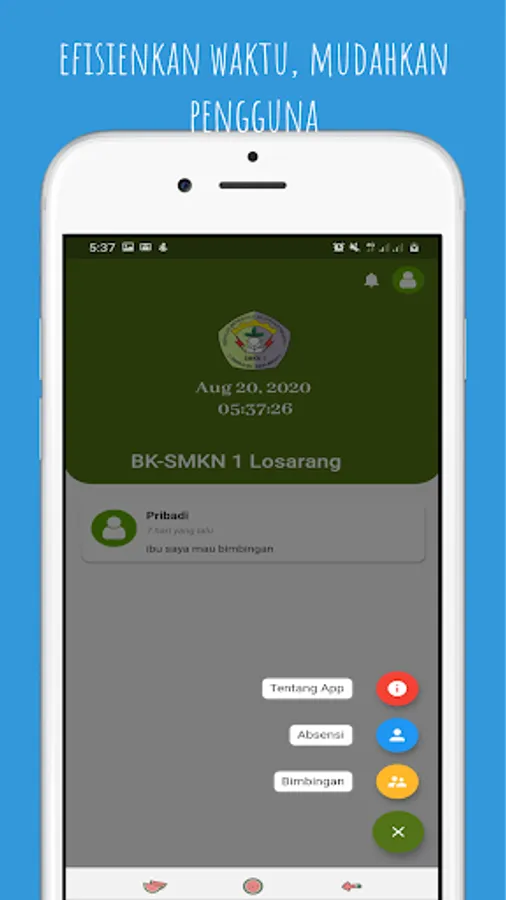 This is an application used to provide guidance and counseling between bk teachers and students. In this application there are several features including: guidance and counseling (live chat), see attendance data, and master data.