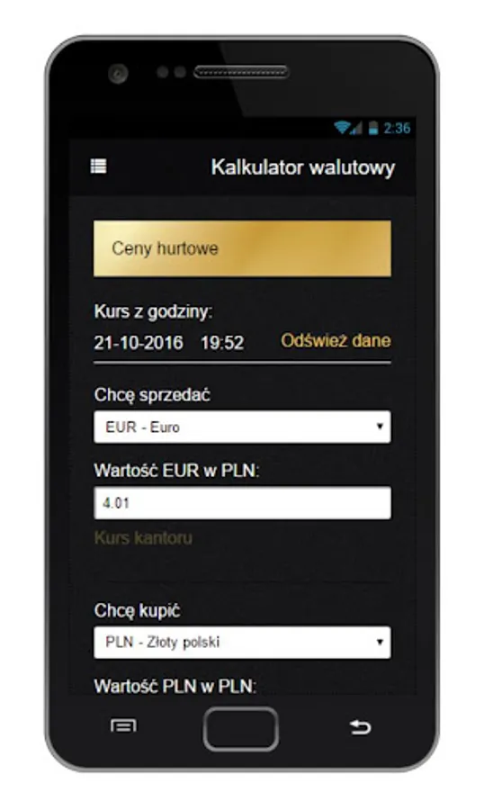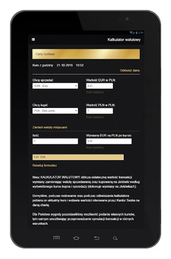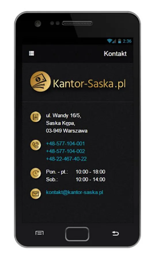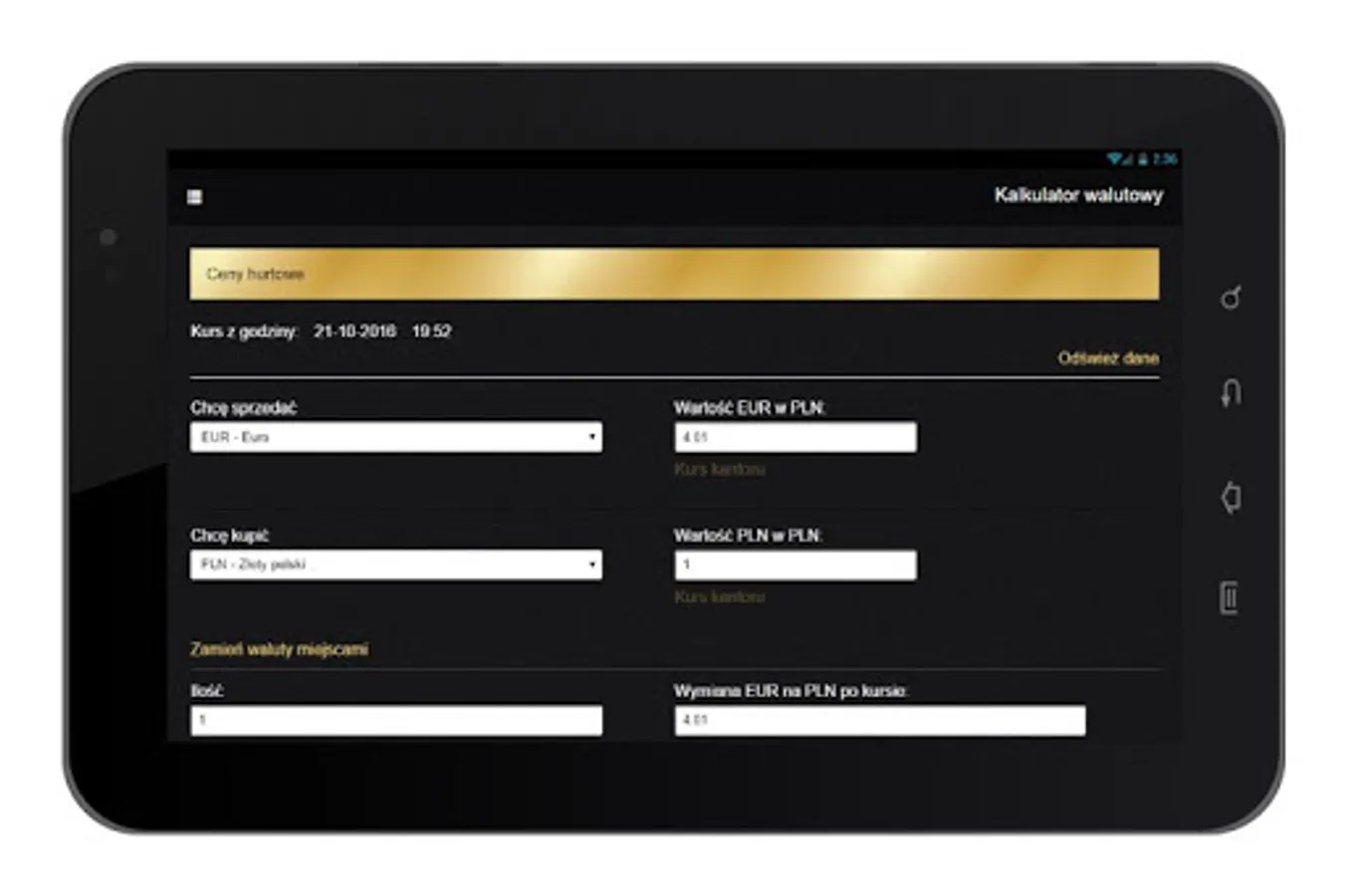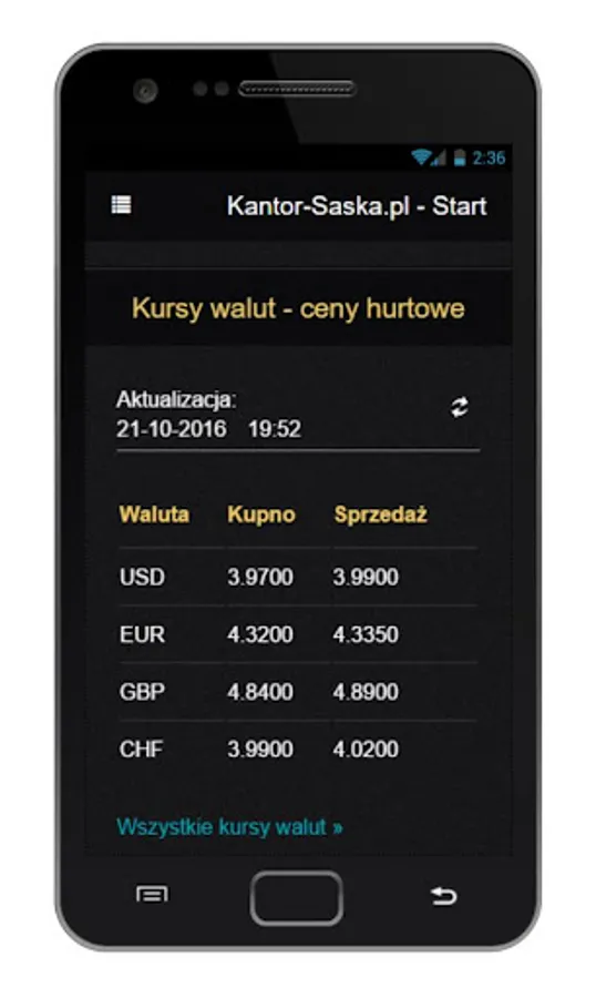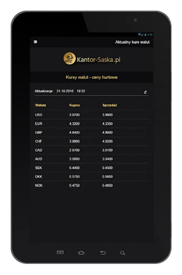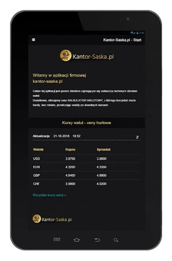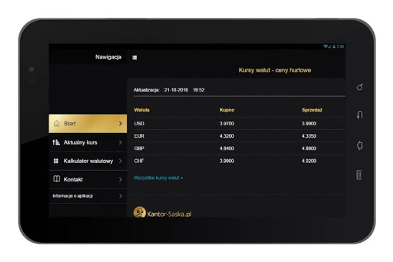 The company's application of the Warsaw currency Saska (Saska Kepa district) allows you to quickly check the current exchange rates.