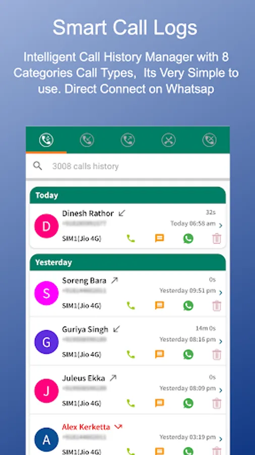 - Various Call Category like Incoming, Outgoing, Missed, Rejected, Blocked, Unknown Calls, Not Picked Outgoing Call, Never attended Incoming, Never
