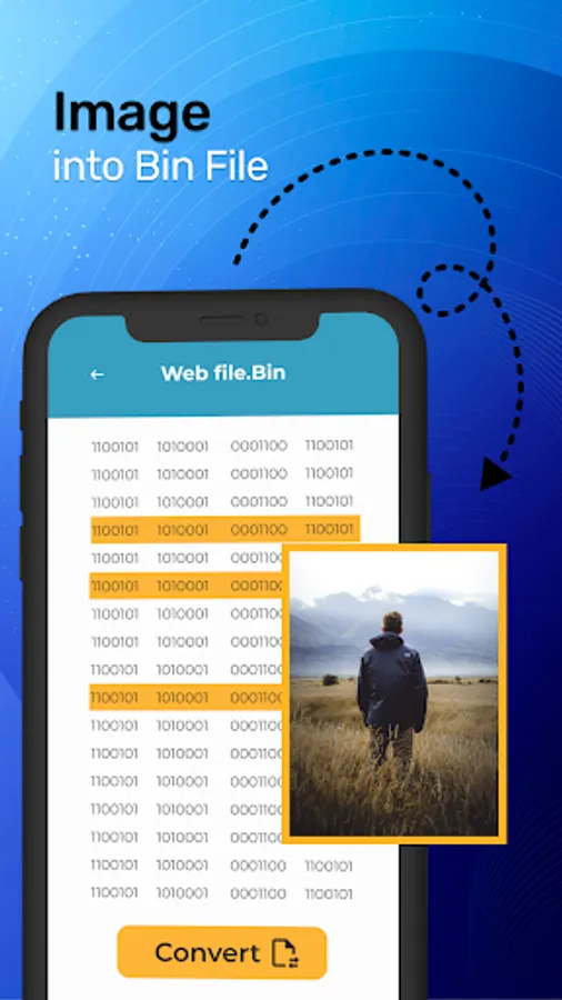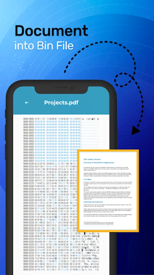Introducing Bin Viewer: Bin File Opener that makes it effortless to read and open bin files on your Android device. With this user-friendly file viewer, you can easily access binary files. If you have numerous bin files on your phone and need a convenient way to open them, look no further than our bin format opener - bin photo file opener app. It's a helpful tool that allows you to view binary files stored on your device. Bin file viewer for android - Bin Viewer app boasts a simple and intuitive interface, making it easy to open and view binary files. Additionally, you can convert your photos into binary code using this Bin File Opener: Bin Viewer app. Our main goal in developing the Bin Viewer app was to enable you to convert any photo or document into a binary file effortlessly. You can even open those converted files within the app or save them in PDF format. Give it a try today! With the Bin File Opener: Bin Viewer, you'll gain valuable insights into how data is organized and stored, enabling you to analyze and work with binary files accurately and confidently. Extract the information you need, visualize the file's structure, and make informed decisions based on the app's insights while viewing bin files.