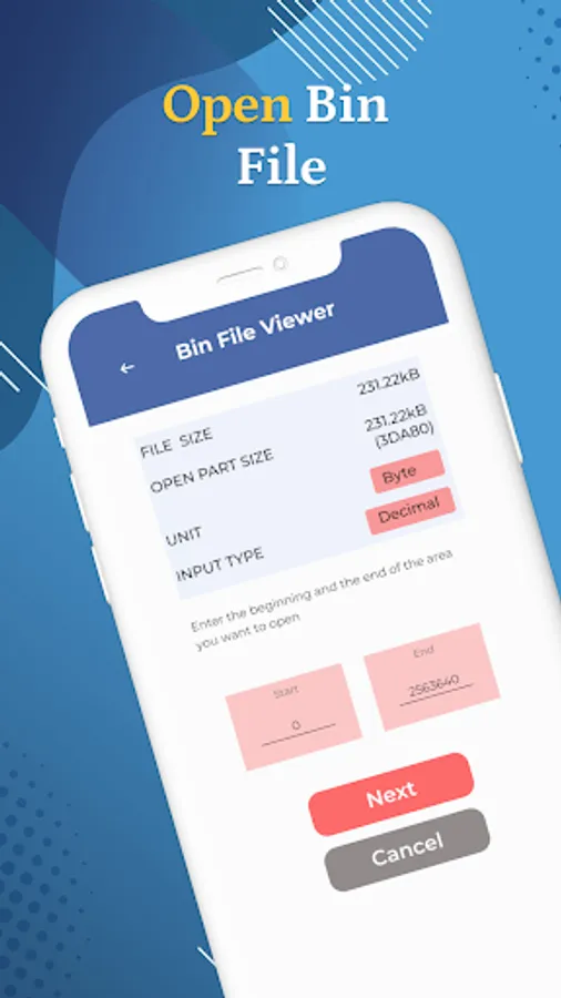 Anyone who needs to view and read binary files on their mobile device can use the Android app "Open Bin File - Bin File Viewer and Reader." We offers the bin file opener for android for free and works with various Android devices. Open Bin File's capacity to open and read a number of binary file formats using this bin video file opener: binary file viewer. This makes the app a helpful tool for software developers, system administrators, and technical support staff who need to view the contents of a binary file and bin documents. When you choose a binary file to open, the app clearly and neatly presents its contents. Depending on your needs, you can view the file according to your choice. Bin format viewer - Open Bin File offers a variety of helpful features in addition to just allowing users to view a binary file's contents. bin file opener for android: Bin Viewer is simple to find specific information within a big binary file. You can view binary files in the app when you simply select the file and Bin File Opener: Bin Viewer will automatically convert file into binary code file. Users of the bin opener: bin viewer app can open previously created bin files from their smartphones. With this bin open app: binary file opener app, you can quickly open any location on your phone where your bin file may be.