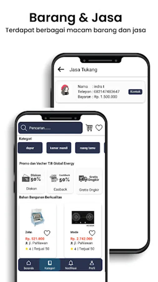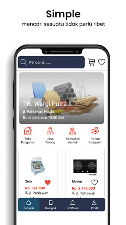 BINA Apps is an application that is able to facilitate the community in the buying and selling system of building materials, handyman services, and architect consultants. The meaning of BINA is taken from Arabic which means wake up, while the blue color means the symbol of the sky. BINA Apps has many features, one of which is a feature for buying and selling.