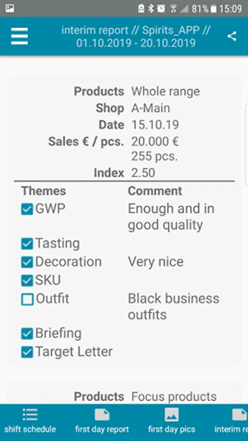 This app offers you a comprehensive overview of your promotional activities in every given travel retail channel: promoter shifts, sales reports, tasting stocks, consumer profile and feedback as well as photos on a daily basis.
