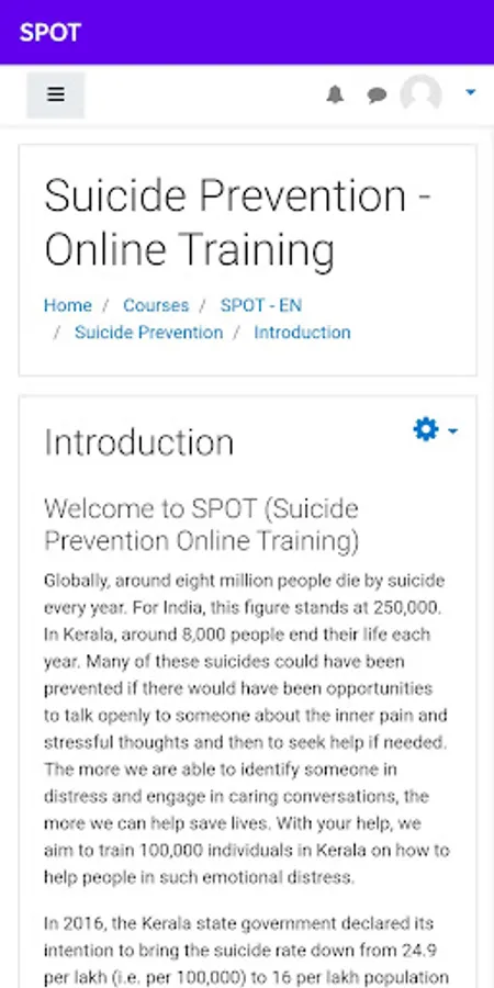 In 2016, the Kerala state government declared its intention to bring the suicide rate down from 24.9 per lakh (i.e. per 100,000) to 16 per lakh population in accordance with the United Nations Sustainable Development Goals (UN SDG) programme. We hope that this short course will be useful in our efforts to achieve this.