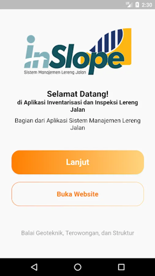 Inslope is software that is part of the slope management system developed by the Ministry of PUPR as a tool for surveyors in conducting an inventory of slope data and inspection of slopes along national roads.